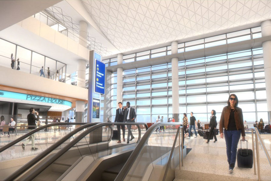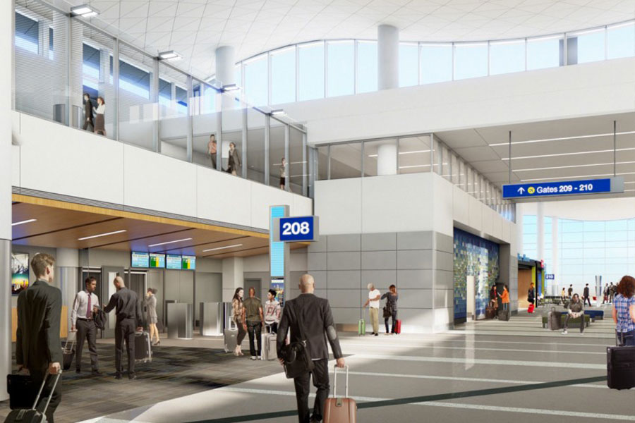 The Los Angeles International Airport (LAX), known as the nation’s third busiest airport, has been undergoing a major overhaul that requires adherence to strict city building codes. With the addition of the Tom Bradley International Terminal (TBIT) in 2013, came a list of projects to be piloted throughout the airport. One of the major projects on that list is the new Midfield Satellite Concourse (MSC) North, a five-level, 750,000 square-foot expansion that will be accessible via a spacious 1,200 ft. long tunnel corridor with moving walkways from the Tom Bradley terminal. With 12 new gates, aircraft parking aprons and taxiways, the new concourse addition will improve operations, enable faster connections, and ease passenger access, all while providing state-of-the-art facilities. Corgan is the lead architecture firm, in association with Gensler and gkkworks (now CannonDesign), on the design build project for the Midfield Satellite Concourse. Turner Construction Company and PCL Construction Services, Inc. are managing the project. Construction, which is a part of a 1.2-billion-dollar initiative, started in February of 2017 and is expected to wrap up in early 2020.